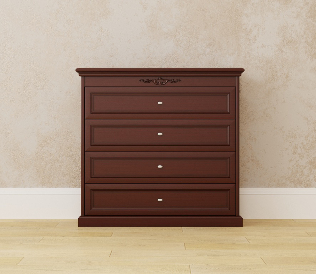 Комод на 4 шухляди в класичному стилі з масиву дерева Грація ROKA, колір горіх
