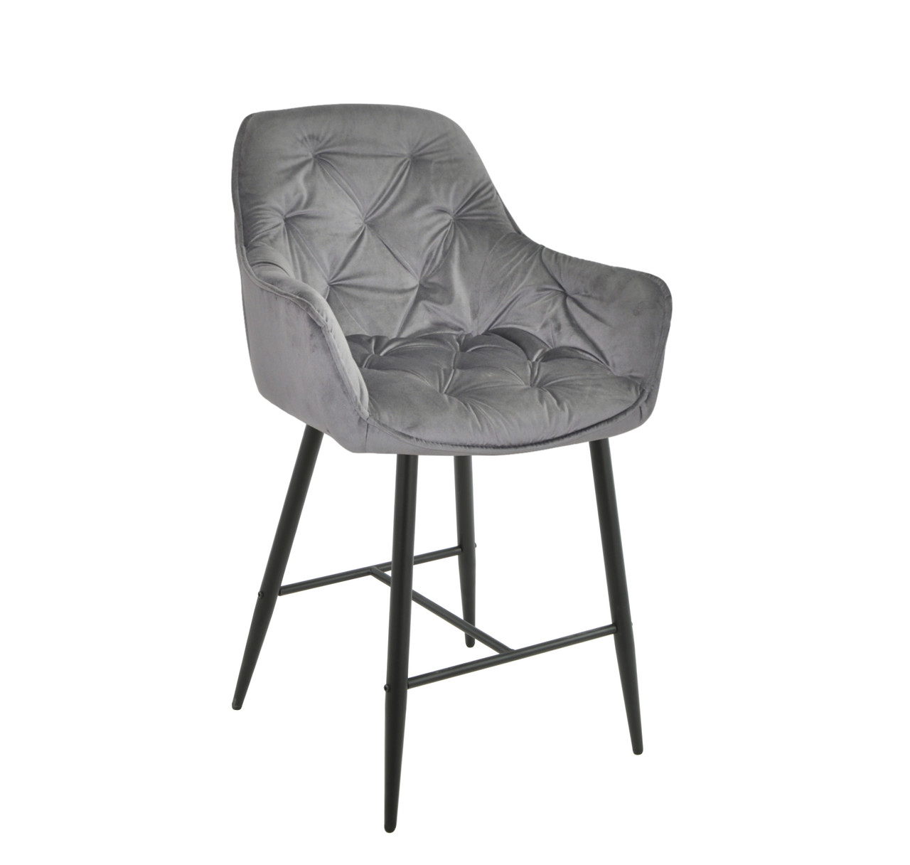 Крісло м'яке барне з підлокітниками на металевих ніжках CHIC BAR 75- BK оксамит, сірий PH - 614