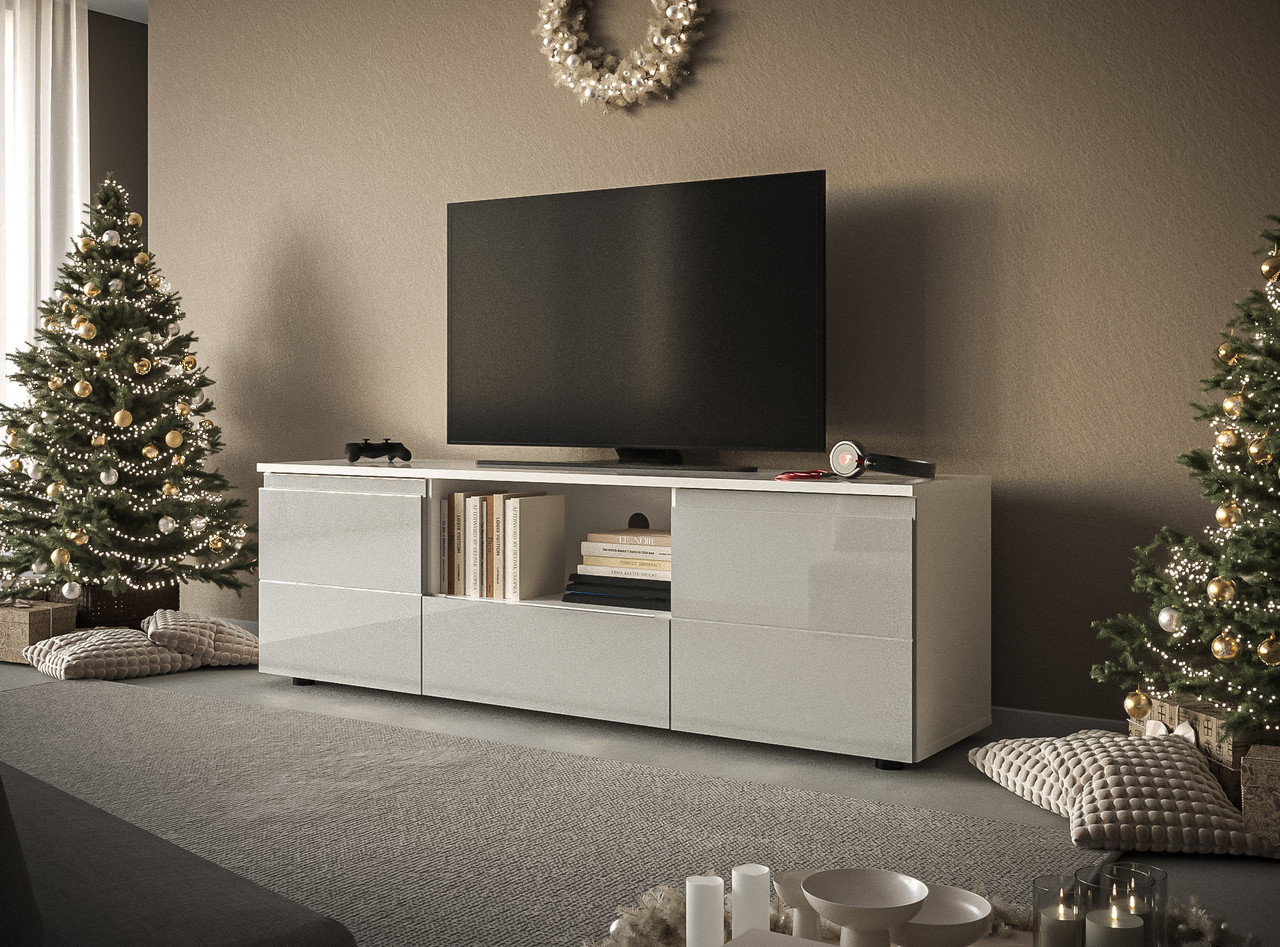 Тумба ТВ Mezo 140 Accord , колір білий/сіра перлина глянець
